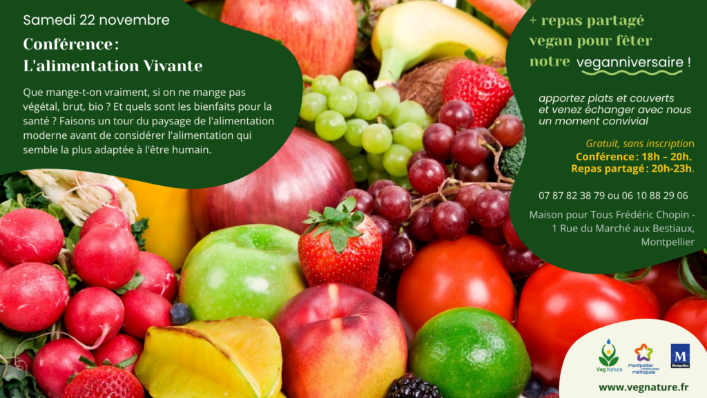 Soirée Alimentation vivante suivie d’Apero Buffet Vegan Anniversaire