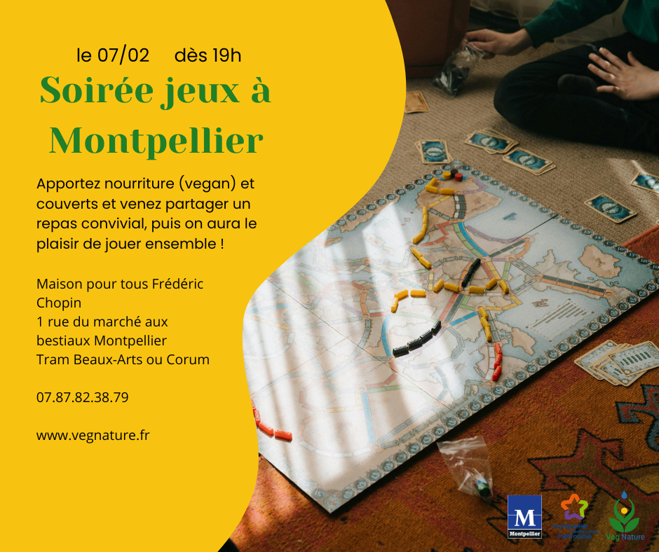 L’association Veg Nature a le plaisir de vous convier samedi 7 Février à notre Soirée Jeux avec Repas partagé 100% végétal